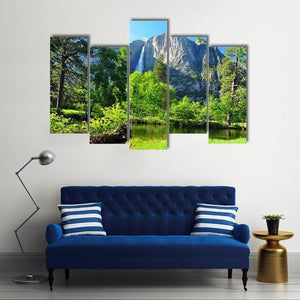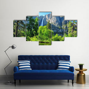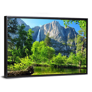 Capture the serene beauty of Upper Yosemite Falls with this stunning canvas print. Featuring majestic waterfalls cascading down rocky cliffs amidst lush greenery, this artwork brings a touch of nature's tranquility to your space.