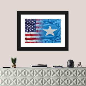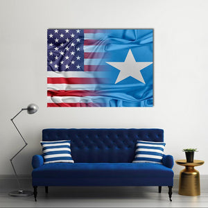 This canvas art features the overlapping flags of the USA and Somalia, creating a powerful and symbolic representation. The blue, red, and white palette evokes a sense of patriotism, making it a striking addition to any space.