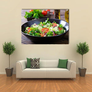 Celebrate the beauty of fresh food with this vibrant canvas art featuring a close-up of colorful salad ingredients. Bursting with greens, reds, and purples, it's a reminder of healthy living and can brighten any kitchen or dining area.