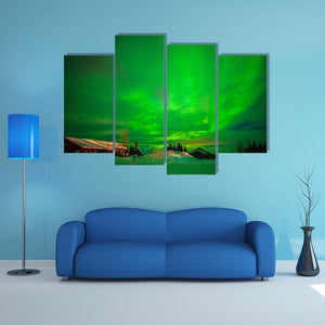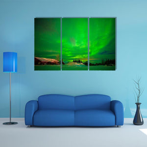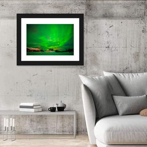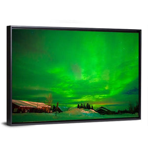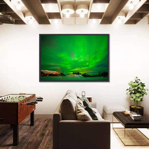 Capture the enchanting beauty of the aurora borealis with this stunning landscape canvas. Featuring magical streaks of green light over a serene, snowy scene, it evokes a tranquil winter night. Ideal for adding a touch of nature-inspired elegance to your decor.