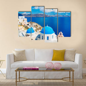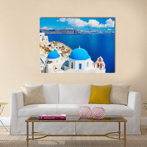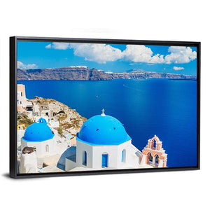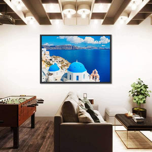 Santorini Blue Dome and Ocean View Canvas Wall Art