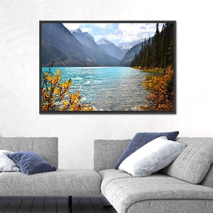 This canvas art captures the serene beauty of Lake Louise nestled in Banff National Park, showcasing vibrant autumn foliage, snow-capped mountains, and a tranquil lake. With its rich colors and peaceful atmosphere, it makes a perfect addition to any nature lover's decor.