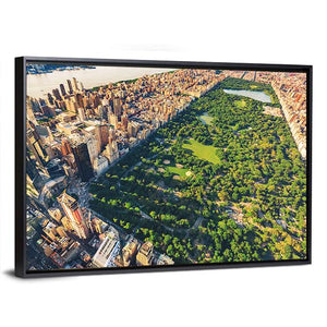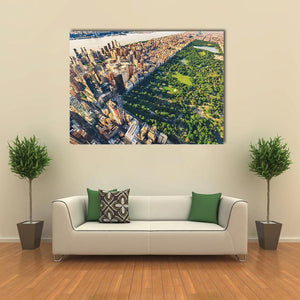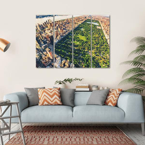 This vibrant canvas print captures the stunning skyline of New York City and the lush greenery of Central Park, showcasing a dynamic aerial perspective filled with sunlight and natural beauty. It’s a grand depiction of urban life, perfect for enhancing any space.