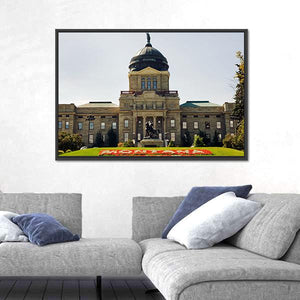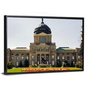 Celebrate the grand architecture of the Montana State Capitol with this vibrant canvas wall art. Featuring a stunning dome structure, flowers, and an equestrian statue, this piece captures a moment of beauty and elegance. It's a perfect addition to any room looking to embody an official and inspiring atmosphere.