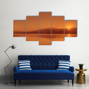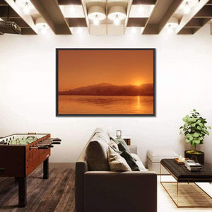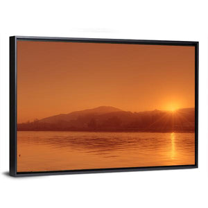 This canvas wall art captures the serene beauty of the Nile River at sunset, highlighting the warm tones of orange and gold against the tranquil waters and hills. It's an inviting piece that adds a peaceful atmosphere to any space.