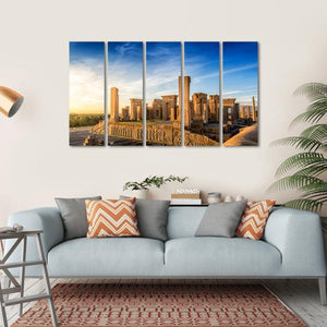 Experience the majesty of ancient ruins with this canvas wall art featuring Persepolis, the capital of the Achaemenid Empire. Its photorealistic depiction showcases carved reliefs and tall columns beneath a clear blue sky, evoking a sense of travel and history.