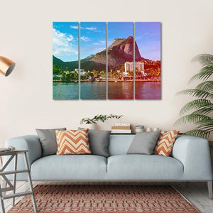 This vibrant landscape captures the beauty of Rio de Janeiro with its stunning views of mountains, waterfront buildings, and a serene lake. The artwork's rich palette of blues, greens, and browns evokes a sunny, lively atmosphere, perfect for adding a refreshing touch to your walls.