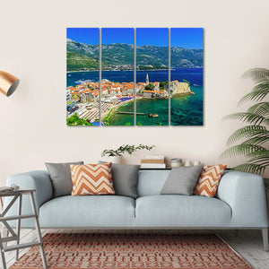 Capture the vibrant essence of the coastal town of Budva in Montenegro with this stunning canvas wall art. Featuring an aerial perspective, the artwork showcases bright blue waters, red-tiled roofs, and lively beach scenes. Ideal for any room seeking a scenic and sunny atmosphere.