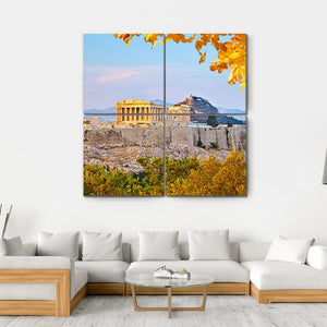 Capture the serene beauty of Greece with this stunning canvas featuring the majestic Parthenon at sunset. The golden, blue, and orange hues create a historic atmosphere, making it a striking addition to any wall decor.