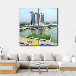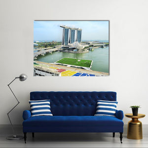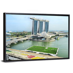 This canvas wall art features a stunning cityscape of Marina Bay, showcasing iconic skyscrapers and a vibrant waterfront. The photorealistic depiction captures the energetic urban atmosphere, making it a striking addition to modern décor.