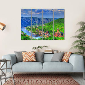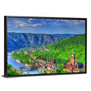 This canvas wall art captures a scenic view of Cochem, with a serene river flowing through a vibrant valley. Surrounded by mountains and dotted with charming buildings and bridges, it brings a peaceful touch to your space.