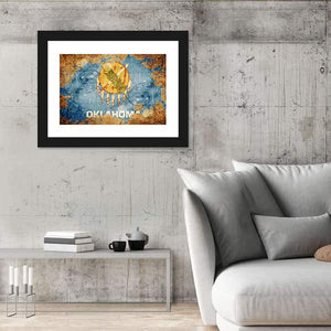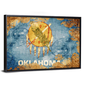 Celebrate the spirit of Oklahoma with this vintage flag canvas art. Featuring a rustic palette of blue, gold, and brown, it evokes a sense of patriotism and warmth, making it a charming addition to any wall decor.
