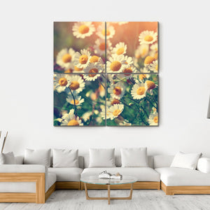 This canvas art features a field of vintage wild chamomile flowers, capturing their beauty with a bright and peaceful vibe. The sunny palette of white, yellow, and green brings an uplifting energy to any space.