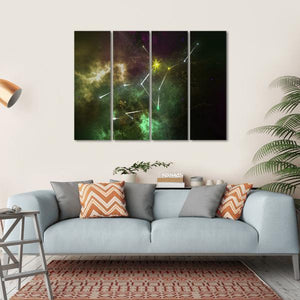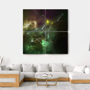 This canvas art unveils the Virgo constellation amidst a cosmic scene filled with glowing stars and swirling gas clouds. Its deep greens, vibrant yellows, and rich purples create a mysterious, ethereal atmosphere, perfect for adding a touch of cosmic wonder to your space.