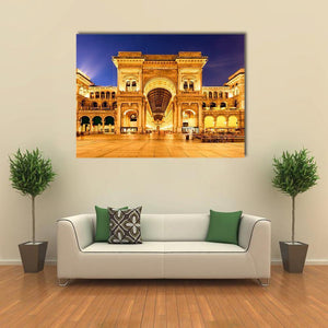 Capture the grandeur of Milan's architectural beauty with this stunning canvas art featuring the iconic Vittorio Emanuele II Gallery. This piece exudes elegance and a historic vibe, showcasing illuminated buildings against a captivating evening sky.