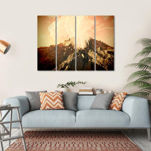 Experience the intensity of a volcanic eruption with this striking canvas print. Capturing the dramatic ash cloud and rugged mountain landscape, this artwork evokes powerful emotions of nature’s raw force. Its rich palette of orange, brown, and gray brings an epic touch to your wall.