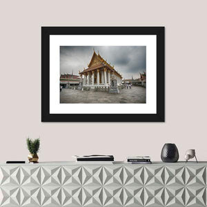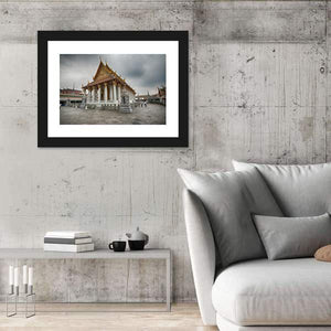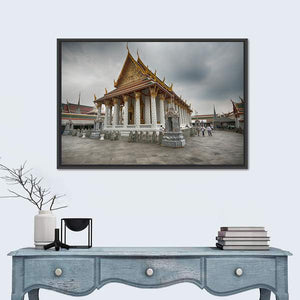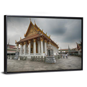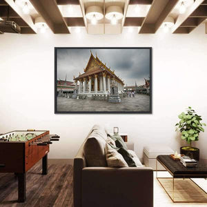 Capture the essence of Thailand's Wat Arun Temple with this stunning canvas wall art. This piece features intricate architectural details, like the ornate golden roof and numerous white columns, evoking a serene and spiritual atmosphere ideal for any space.