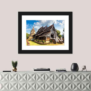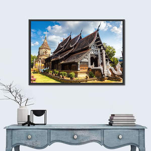 This canvas features the serene Wat Lok Molee temple in Thailand, showcasing its ornate roof and tiered pagoda against a backdrop of blue skies and fluffy clouds. With its peaceful and traditional vibe, this artwork adds a touch of tranquility to any setting.