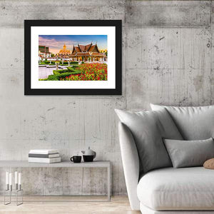 Capture the vibrant essence of Wat Ratchanatdaram Temple in Bangkok with this stunning canvas print. Featuring a golden stupa set against lush red flowers, this artwork evokes a serene and exotic atmosphere, making it a beautiful addition to your wall décor.