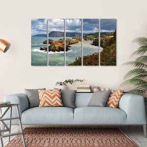 This landscape artwork features a serene bay surrounded by a rocky coastline, boats, and hills. With its realistic style, it captures the natural beauty of the scene, highlighting rock formations, white clouds, and lush vegetation. It adds a calming touch to any room decor.