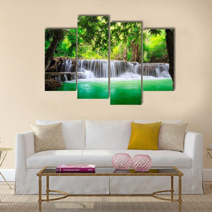 This canvas art features a stunning waterfall surrounded by lush forest and vibrant vegetation. Its serene and natural vibe makes it a beautiful addition to any space.