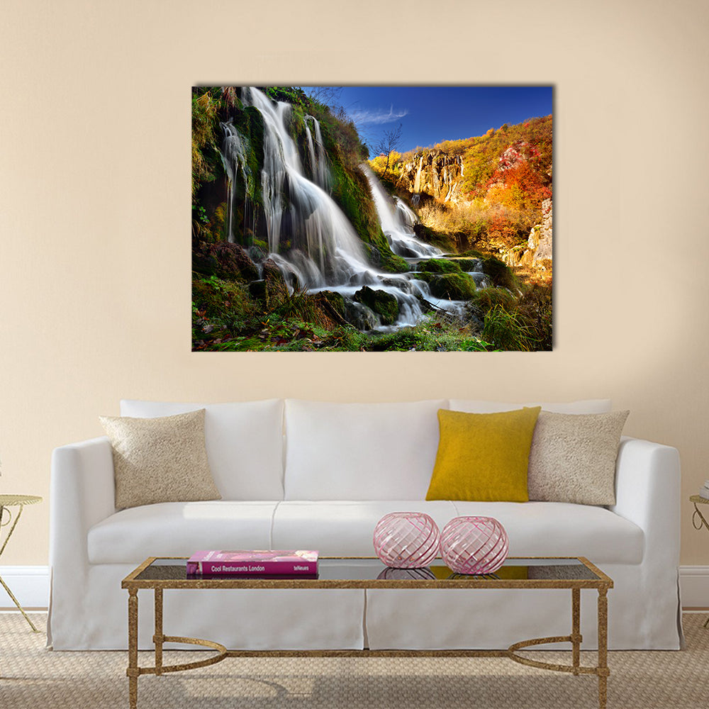 Capture the raw beauty of nature with this stunning canvas print featuring a cascading waterfall from Plitvice Lakes National Park. The dramatic interplay of water, mist, and verdant landscape creates a mesmerizing focal point that transforms any room into a sanctuary of natural wonder. Perfect for art enthusiasts and nature lovers alike, this gallery-quality print brings the serene majesty of Croatia's most iconic destination directly into your home. The vivid colors and intricate details command attention while evoking a sense of tranquility and awe. An investment in both aesthetics and emotional resonance, this canvas wall art elevates your interior design with sophistication and timeless appeal.