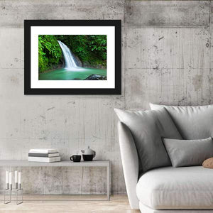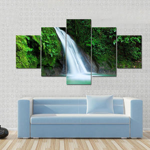 This canvas art beautifully captures a waterfall surrounded by lush greenery and a serene pool. It's a refreshing piece that brings the tranquility of nature indoors.