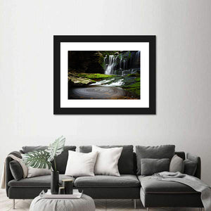 Immerse your space in the serene beauty of cascading waters and tranquil reflections. This waterfall landscape canvas captures the dynamic interplay between flowing movement and still waters, creating a composition that draws the eye and invites contemplation. The rippling pond detail adds depth and visual interest, making this piece a sophisticated focal point for any room. Perfect for those seeking to elevate their interior with nature-inspired artistry, this canvas print combines aesthetic appeal with the calming essence of natural landscapes. A versatile addition that complements both contemporary and traditional décor styles.