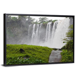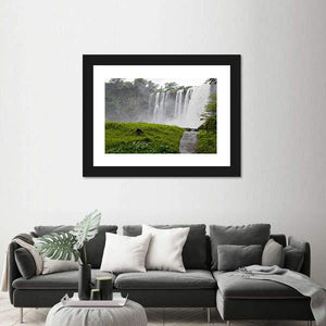 This canvas wall art captures the serene beauty of the Eyipantla waterfall surrounded by lush green grass and vibrant trees. The realistic portrayal evokes a tranquil atmosphere, making it a perfect addition to any nature-inspired decor.