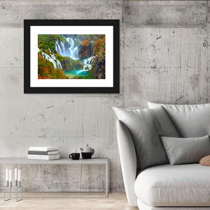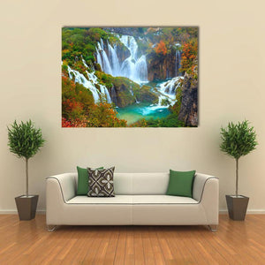 Bring the serene beauty of Plitvice National Park into your space with this captivating canvas print. Featuring a waterfall surrounded by lush vegetation, this artwork evokes a natural, majestic atmosphere that invites relaxation and contemplation.