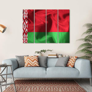 This canvas features the national flag of Belarus, showcasing bold red and green stripes alongside an ornamental pattern. Its simple yet patriotic design makes it a striking addition to any wall decor.