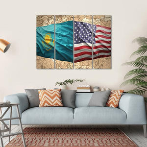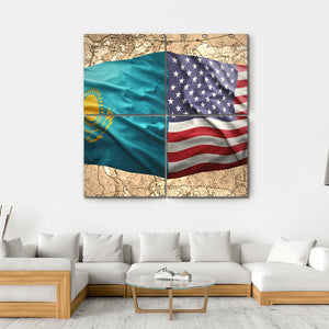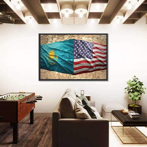 This artwork features the flags of Kazakhstan and the United States, beautifully draped over a sepia-toned map. It conveys a patriotic and symbolic vibe, perfect for showcasing unity and diversity.