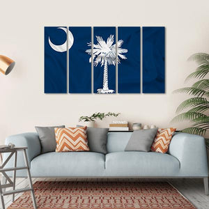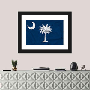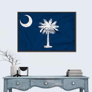 Celebrate your Southern pride with this canvas art featuring the South Carolina state flag, showcasing a gentle ripple effect. The design prominently features a palmetto tree and crescent moon against a blue and white backdrop, evoking a sense of patriotism and dignity.