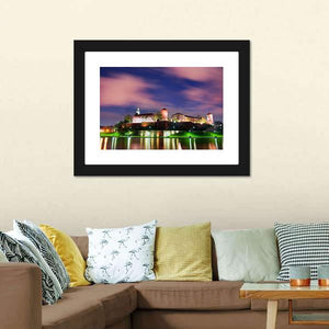This stunning canvas art captures Wawel Castle, reflecting its majestic beauty over the serene waters and under a night sky. The photorealistic style and rich palette of blues, pinks, and greens create a romantic atmosphere, making it a perfect addition to your landscape decor.