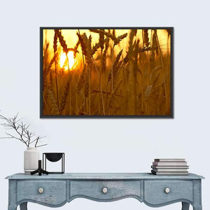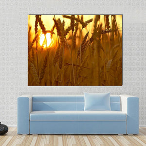 This canvas captures the serene beauty of a wheat field at sunset, showcasing warm tones of gold, orange, and yellow. With sun flares delicately shining through the stalks, it brings a tranquil, rustic vibe that fits perfectly in any nature-inspired decor.