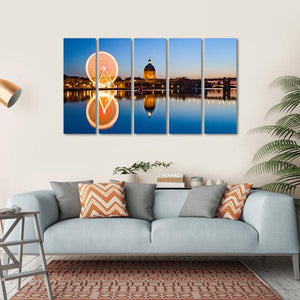 This modern canvas art captures a vibrant Ferris wheel against a serene backdrop in Toulouse. With reflections of lights dancing in the waterfront, it evokes a peaceful and romantic atmosphere, making it a lovely addition to any wall decor.