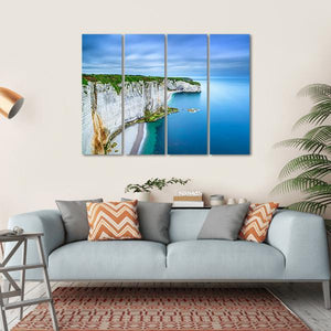 Experience the serene beauty of the coastal cliffs and turquoise waters of Normandy. This canvas art captures an aerial view enriched with white chalk cliffs and gentle hues of blue and green, making it a lovely addition to your decor.