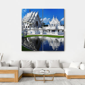 This stunning canvas art captures the serene beauty of the White Temple in Chiang Rai, featuring its ornate architecture reflected in a tranquil pond. The peaceful atmosphere invites a sense of spirituality, making it a beautiful addition to your space.