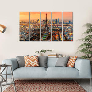 Experience the beauty of Paris with this detailed canvas art featuring the iconic Eiffel Tower and the vibrant skyline. The warm orange and blue hues capture the essence of twilight, creating a lively urban atmosphere perfect for brightening any space.