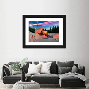 Experience the serene beauty of a snowy cabin nestled among majestic mountains with our Wild Carpathian in Montenegro canvas. The soft palette of whites, blues, and pinks evokes a cozy and peaceful atmosphere, perfect for any room in your home.