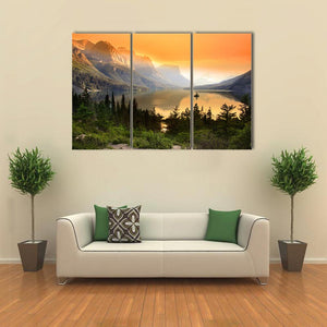 Experience the serene beauty of Wild Goose Island in Glacier National Park with this stunning canvas wall art. Featuring breathtaking mountains and a tranquil lake, this piece captures the warm hues of a sunset, bringing a sense of peace to any space.