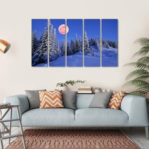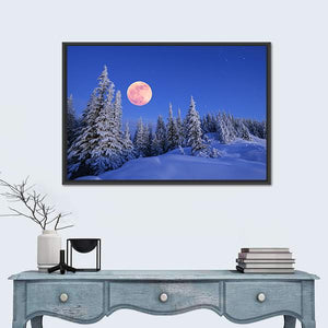This artwork captures a serene winter landscape, showcasing a moonlit forest with snowy trees under a starry sky. The use of blues and whites creates a peaceful, magical atmosphere, perfect for enhancing your home decor.