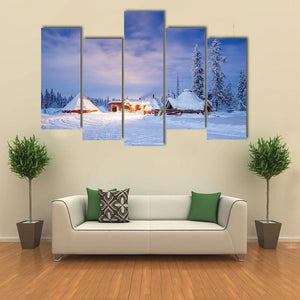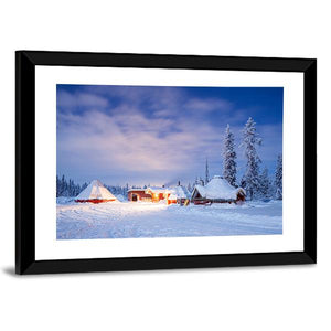 Experience the serene beauty of a winter landscape featuring a cozy cabin nestled in a snowy village. With glowing windows and a starry sky, this artwork evokes a peaceful and cold night ambiance, making it a charming addition to your home decor.