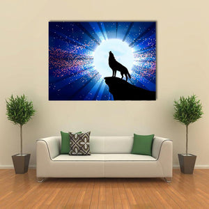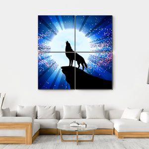 This captivating canvas art features a silhouette of a wolf howling under a luminous moon. The contrasting blue, black, and white tones create a mysterious, wild atmosphere that's sure to inspire a sense of wonder. Perfect for animal lovers and those looking to add a touch of the untamed to their decor.