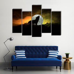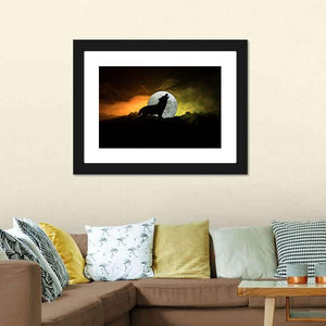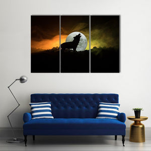 Howling Wolf Silhouette with Moon and Smoke Canvas Wall Art