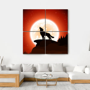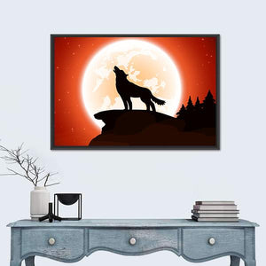 This striking canvas art features a majestic wolf silhouetted against a glowing full moon and a starry night sky. The mysterious and serene atmosphere invites a wild spirit into your space, making it a unique piece for any décor.