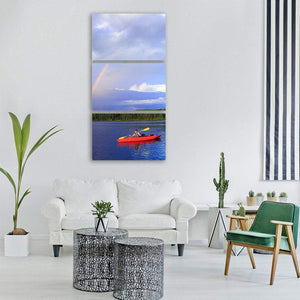 Woman Canoeing In A Lake Vertical Canvas Wall Art