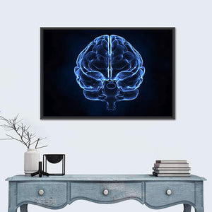 This striking canvas artwork features a detailed x-ray of the human brain, showcasing intricate neural pathways against a dark background. The modern design combines shades of blue and black, creating a scientific yet artistic vibe that adds a unique touch to any room.