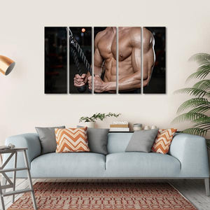 This captivating canvas art captures a powerful bodybuilder during a triceps exercise, showcasing intense muscles and focus. The close-up composition highlights the athlete's determination and strength, making it a compelling addition to any fitness-themed décor.