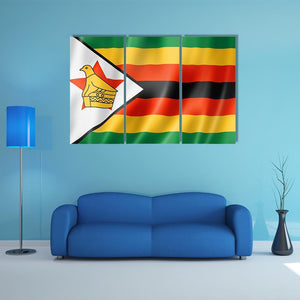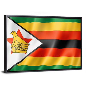 This canvas features the Zimbabwe flag and its distinctive bird emblem presented in a bold diagonal split. Rendered in green, yellow, red, black and white, it brings a vibrant, patriotic mood that works well in modern home decor and room settings.